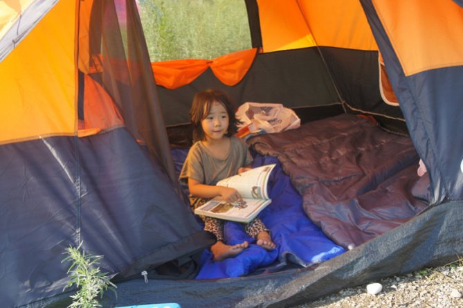 A little cold in the night ,and heavy dew,my wife never slept to cover my baby's sleeping bag to protect catched a cold.....the next morning sun is perfect,have a walk in the morning......